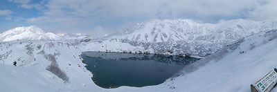 当初は、13時ちょうどのトロリーバスで先へ進む予定であった。1時間早く着いたので、予定を戻すなら3時間も使える。案内板に散策コースがいくつか紹介されていた。火山湖のみくりが池を一周するコースがあって、所要1時間とある。もっともこれは雪のない時期の話だろう。室堂山展望台コースは往復2時間ほど。これも雪の時期は怪しい。バリアフリーコースは平坦な道をみくりが池まで行って、その周辺を歩く1時間コース。これがいい。平坦とはいえ、雪が積もって歩きにくい。良い運動となった。