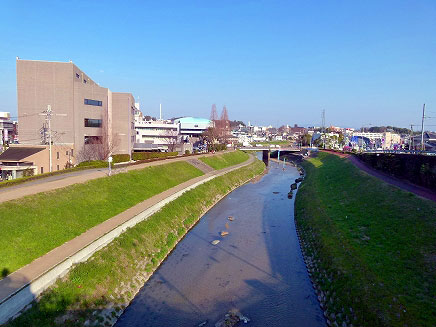 川幅が狭く、どうやらこちらは支流の葛下川だ。大和川は奈良県に発し、西へ流れて、河口は大阪市と堺市の間の境界である。そういえば南海高野線、南海線で渡った。阪堺電軌に乗ると大和川を境に料金が変わった。この水があの河口に注ぐのか……。土手の歩道で犬を散歩させている人がいる。春の良い陽気である。それにしても、なぜこの土手には桜を植えないのだろう。良い景観になりそうだけど。