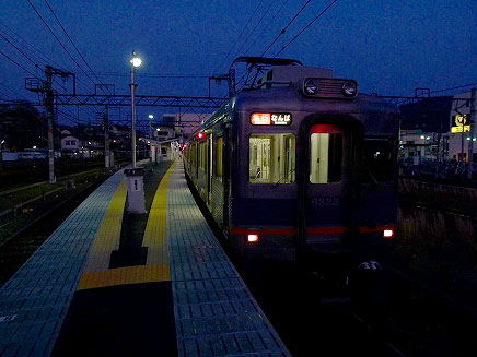 家路をたどる人々に囲まれていると、旅人には寂しい時間となってしまう。日が暮れて、遠くに沈む夕日を観た。その時だけは首を後ろに向けていた。もっとも、ほとんどの人が降りてしまい、ロングシートに横向きに座っても許されそうではあった。