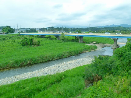 雲出川を渡り、六軒駅に停車。上り普通列車がこちらの到着を待っていた。単線でも本線である。列車の運行は多い。その先でまた鉄橋。三渡川である。鴨長明の伊勢記に登場する川で、潮が引いた時、満ちた時、その間で渡る場所が変わるという。はたして鴨長明はどのあたりで渡ったか。ちなみに、伊勢街道の橋は車窓左手にあり、一瞬で過ぎていく。