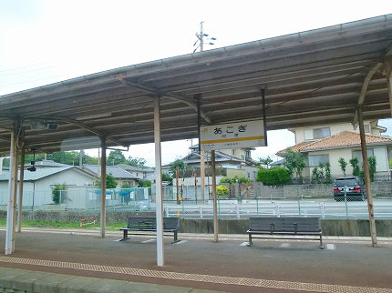 こちらの停車駅は阿漕。アコギな商売の阿漕である。ここから見えないけれど、約2キロ東に阿漕ヶ浦がある。その海は伊勢神宮に献上する魚がいるため禁猟とされていた。しかし、がめつい漁師が何度も密漁を繰り返し、「阿漕にしつこい悪人がいる」と噂となって、阿漕な奴というようになったとされている。転じて、阿漕な商売とは違法または違法スレスレを承知の商いを言うわけだ。