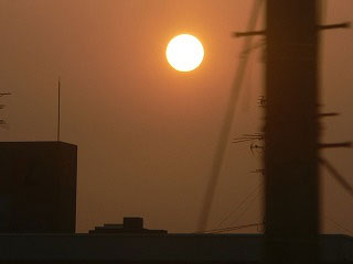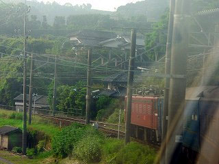 空が明るくなってくる。車窓を過ぎる建物たちはまだ眠っている。その建物の向こうに光点が見え隠れする。光点は列車の速度に合わせるかのように高度を上げ、新鮮な玉子の黄身のような、赤みがかった太陽になった。私が借りた小さな動くホテルは東向きの部屋になって朝を迎えた。赤い色は今日の暑さを暗示している。5月末。関東では初夏の陽気だが、九州はもう真夏かもしれない。