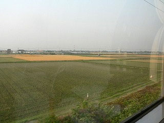 短い汽笛が聞こえて列車が走り出した。ここから先は長崎本線である。市街地を抜けると佐賀県の田園地帯になり、緑色の田んぼと黄色の畑が市松模様を描く。二毛作地帯だ。このあたりでは同じ田で米と麦を作る。緑色が田植えを終えた稲、黄色が収穫前の麦、両者の彩りが楽しい。