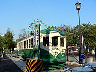 陽射しと風が心地よく、冷房車にいるよりも外を歩きたくなったので、荒川遊園地前で降りた。案内図によると、遊園地に古い電車が展示されているらしい。遊園地までは徒歩3分とあるが、停留所から遊園地の入り口までは遊歩道が整備されていた。親子連れやお年寄りがのんびりと歩いている。沿道にもんじゃやお好み焼きを食べさせる駄菓子屋があった。しかし最近の子はファーストフードが好みなのか、お客は大人ばかりである。