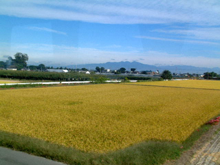列車は秩父山地の東側を縁取るように走っていく。高校生の集団は越生(おごせ)で降りて、車内は急に静かになった。越生には東武鉄道が乗り入れている。私が乗った列車はここで7分も停まり、ローカル線らしい雰囲気になってきた。車窓には稲田が目立つ。今年は冷夏で米が不作という。本来なら黄色の稲穂の波になるところが、青い葉が残っているから黄緑色にみえる。穂は上を向いている。