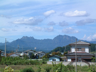 製糸産業で栄えた富岡市に入ると、正面に妙義山が現われる。その威容はすこしずつ車窓の右側に移って大きくなる。カメラを構えるが、線路のそばの立木や架線柱に邪魔される。木が多い理由は上州のからっ風を避けるためだろうか。ちゃんと写真を撮りたければどこかの駅で降りればいいことだから文句は言うまい。