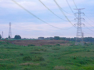 そんな景色が延々と続く中、車窓には高圧線と鉄塔が現れては消えていく。鉄塔銀座と言っても良いほどだ。電車は何度も高圧線をくぐった。これらの高圧線も地磁気観測所に遠慮して南側を迂回しているのだろうか。西武多摩川線は高圧線の真下を通っていたけれど、つくばエクスプレスは高圧線を何度も潜る。そもそも、いったいどこで作られた電力を都心へ運んでいるのだろう。