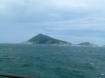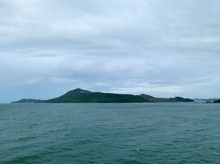 左舷の答志島の先に大築海島と小築海島が続く。しかし小さな島だから、もう風よけの効果は小さい。風と波が大きくなってきた。出港するときにデッキは私だけ。しばらくして若い夫婦と小さな男の子が遊びに来た。船の速度が上がって彼らが船室に戻ると、今度は私より十歳ほど年上とみられる夫婦が現れ、ひとつだけあるベンチに座って風にあたった。風が強くなり、立つには何かに掴まる必要がある程になると彼らも引っ込んだ。とうとう私ひとりになった。