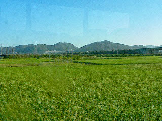 さて、その各務原飛行場は車窓右側にある。さっきからブラインドスクリーンが降りていて景色が見えない。軍事機密だから見えないようにしているのだろうかと疑いたくなるが、日射しのせいである。旅は好天が良いに決まっているが、鉄道の旅では快晴すぎるとこんなふうに困ることもある。滑走路は見えなくても、せめて飛び立つ飛行機くらいは眺めたかった。扉の横に立てばいいけれど、強い光にてらされて、暖かくて眠くて仕方がない。