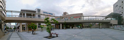 新豊橋駅駅前広場。中央が現在の駅。左の奥に旧駅舎があった