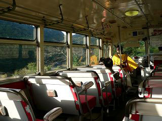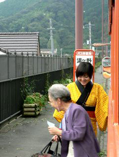 修善寺行きのバスの乗り場は私しかいない。このバスは、伊豆観光のパンレットに必ず掲載されているほど有名だ。しかしこの有様はなんとも寂しい。台風で観光客が減ったのかもしれない、いや、川端康成の小説と同じように、修善寺からこちらへ向かうバスのほうが人気があるのかも、そんなことを考えるうちに、懐かしいボンネットバスがきた。東海バス『伊豆の踊子』だ。ボンネットバスも珍しいが、車掌が乗務する路線バスも珍しい。その車掌が女性というのも珍しく、しかも着物姿で踊子に扮している。今風に言えばコスチュームプレーヤーである。