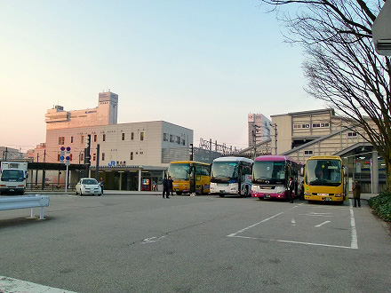 富山駅前に集まる夜行バスは意外と多い。ナンバーや会社を見ると、この時刻だけで東京から3台、関西から1台。夜行の需要はまだまだある。北陸行の夜行列車は利用率が低いから廃止になったと聞いていた。夜行バスが夜行列車の客を奪ったという見方もあるようだけど、鉄道に見捨てられた夜行旅行者をバスが拾ってくれたとも言えそうだ。少なくとも私は拾われた客のほうであった。