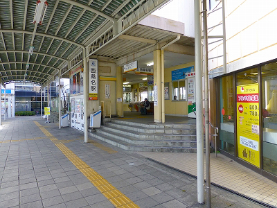 高架歩道の階段を降りると西桑名駅の裏側が見えた