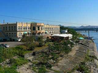 一番船が出るまで約1時間。ぽっかりと時間が空いてしまった。荷物を置いて散歩してみる。船着き場のそばには大きな建物があり、看板にはドイツレストランとあった。日本ラインとはドイツのライン川の風景になぞらえた呼び名で、だからドイツレストランなのだ。建物は静かな佇まいで、むしろ活気がないとも言えるけれど、コーヒーとドイツパン、ソーセージで朝食が食べられるかもしれない。
