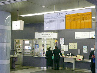 エスカレーターでホームに上がる。手入れが行き届いているのか、汚れるほどの利用者がいないのか、清潔なのに殺風景という印象だ。ピーチライナーの廃止の原因は計画の失敗である。歴史のあるローカル線のように、かつて賑わったけれど役目を果たし、惜しまれつつ引退、という状況ではない。だからちっとも悲しくない。そんな気持ちのせいか、なにもかもがネガティブに感じる。この駅の建物にしたって、「たっぷり予算を頂いて、とっても節約して作りました」という風情である。築15年といえば、建物としてはまだ新しいはずだが、古い雑居ビルのエレベーターホールのようである。