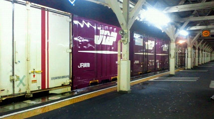 様々な形式の電気機関車がコンテナ貨車を率いていく。トヨタロングパストレインも走る。トヨタロングパストレインは自動車部品専用の貨物列車だ。名古屋と東北の工場を結んでいる。専用の青いコンテナがズラリと並ぶ。そうか、東北の工場は動き出したのか。震災からの復旧が進捗しているようだ。貨物電車Mc250系も通った。こちらは佐川急便専用である。真夜中の貨物列車ショーを眺めつつ、私は『ちくわ稲荷寿司』を食べた。カバンの中でひしゃげてしまい、油揚げからしみでた汁で箱もベタベタしていたけれど、美味かった。