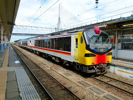 ところが、その『かもしか4号』が来ない。冷房の効かない待合室を出て、案内放送に聞き耳を立てると、『かもしか4号』は運休という。弘前と大館の間が豪雨のため不通になっており、折り返し『かもしか4号』となるはずの『かもしか1号』が大館で運転を打ち切られた。現在、同区間はバス代行となっている。ただし、弘前までは通常通り運行する。