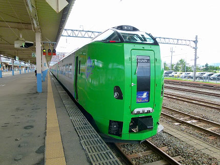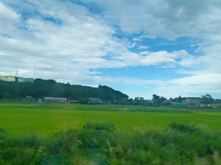 『スーパー白鳥22号』はJR北海道の新型車両789系である。明るいグリーンを基調とした外観は珍しく、清潔感もあって私の好きな電車のひとつ。室内もカラフルで楽しい。ますます私の機嫌はよくなっていく。母も満足げである。車窓は成長期の水田が広がっている。青い空、白い雲。太陽に照らされた稲の緑の美しさ。奥羽本線の朝も水田を見たけれど、こちらは違った趣がある。