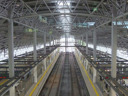八戸駅の大ドーム ホームで雨や雪に濡れない。