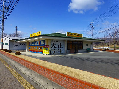 静かな住宅街の細い道を進むと、広い通りが横切っていた。国道421号線である。道路の向こう側は右にコンビニと和菓子屋、左にファミリーレストランだったと思わしき建物。平屋建てで、屋根に「乗って残そう北勢線」「なくならないで北勢線」という看板が立つ。シャッターには電車と子供たちが描かれている。その気持ちは伝わってくるけれど、ファミリーレストランが潰れるようなところで……とも思う。和菓子屋に惹かれる。しかし食事制限の身だと思い直して引き返す。
