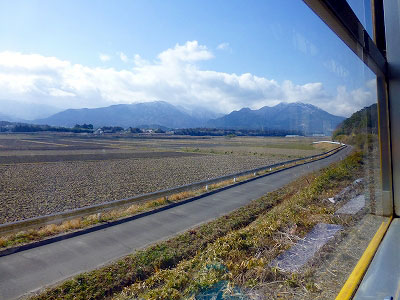 楚原から阿下喜行きの電車に乗った。1時間に1本の貴重な列車だ。しかし乗客は4両編成で数名。昼下がりだから少ないとはいえ、電気代がもったいないと思う。日中は全線を通じて2両編成でも良さそうだ。分割したり連結したりという手間がかけられないのだろうか。