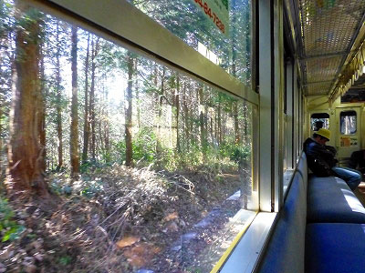 麻生田駅からおばあさんが一人乗ってきた。終点の阿下喜駅は旧北勢町の中心地である。たったひと駅、1時間に1本の電車。お客さんはちゃんといる。電車は林の中を駆け抜けた。北勢線でもっとも大きな車窓の変化だった。この辺りでもっとも員弁川に近づくようだ。しかし川面は見えない。少し離れた低いところを流れているらしい。