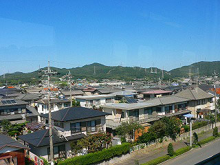 小牧を出た列車は、次の小牧原駅までひと駅だけ名鉄小牧線と併走する。併走といっても地図上のことで、実際はピーチライナーが高架、小牧線が地下と地上だからお互いの姿は見えない。ピーチライナーのほうは小牧原から右に曲がり、今度は国道155号線の真上を走る。眼下には小さな工場が見える。川を渡ると戸建ての家並みになり、また工場が現れる。東京の工業地域は工場とアパート、狭小住宅の密集地だが、このあたりは工場も家もゆったりした構えで、工場はもちろん駐車場付き。家の駐車場も2台ぶんある。アパートも全戸分の駐車場がありそうだ。