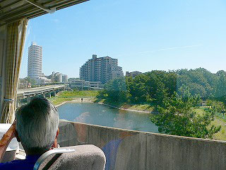 ピーチライナーに乗っている。これを鉄道と言っていいモノかどうか釈然としないけれど、"ゆりかもめ"にしても"ニューシャトル"にしても、新交通システムは楽しい乗り物だ。架線柱がないし、低騒音のおかげで軌道脇の壁も低い。したがって街の景色がよく見える。ヘリコプターでギリギリまで低空飛行したらこんな具合かな、とも思う。それはピーチライナーも例外ではない。しかし、これは公共機関であって遊戯施設ではないから、楽しいだけでは乗って貰えない。だから廃止になってしまう。