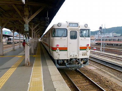 左にカーブして宮川を渡る。これで宮川とお別れだ。分水嶺の長いトンネルを出ると、川の流れが列車の進行方向になった。川に沿い、対岸に渡り、また渡りなおして久々野に着く。下り列車と交換した。ここは飛騨川と支流が交わるところで、一宮へ向かう峠の宿として栄えたと思われる。特急も一部の列車が停車する。