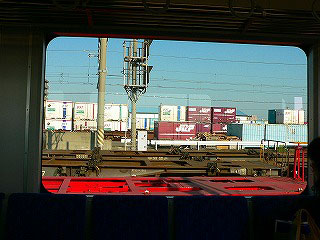 高架を降りて地上を走る。左側に線路の端があり、その線路の数が増えていく。停車。荒子駅だ。隣に広大な貨物ヤードがあった。この線路群は次の南荒子駅まで連続している。車窓左側は貨物列車ばかりで、貨物列車ファンなら涎を垂らしそうな光景である。南荒子は積み卸し可能な貨物ターミナルになっていた。線路の間に適度な隙間があり、コンテナが2層、3層に積まれている。フォークリフトが平べったい貨車にコンテナを載せている。