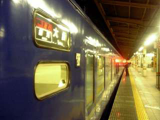 発表会は夕刻に終わり、銀河の発車時刻は23時00分。私はいったん自宅に戻って、取材鞄と旅用の鞄を交換した。品川駅のほうが近いけれど、やはり旅のケジメとしては始発駅から乗りたい。東京駅9番ホームに青い車体が横たわり、蛍光灯からの光を受けてチラチラと輝いている。この時間になると駅弁屋は開いていない。私はホームのコンビニで握り飯と温かい茶を求めた。荷物を寝台に置き、通路側の折りたたみ椅子に座る。23時の東京駅のホームは閑散としている。遮音性の高い寝台車であることと、グループ客の声が騒がしいせいで、発車の汽笛は聞こえなかった。