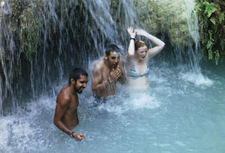 翌朝はここに来る前からぜひ行きたいと目をつけていた、旧日本軍が発見したとされるヒンダー温泉へ足を伸ばしてみることにした。カンチャナブリの町からバスを乗り継いで3時間ほどのところにある小さな温泉だが、想像していた微温湯の温泉なんぞではなく、小さな川の畔にきちんとした浴槽があって、つかるとぽかぽかしてくるだけの温度をしっかりもった温泉であった。