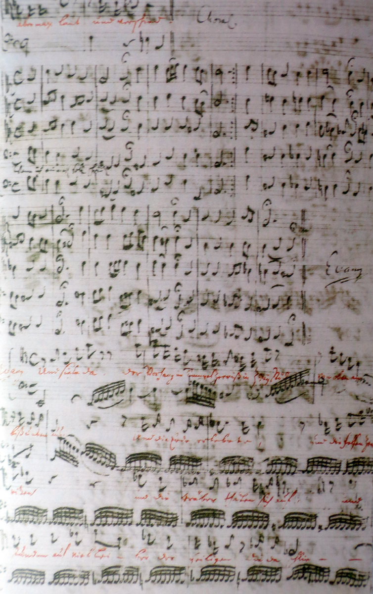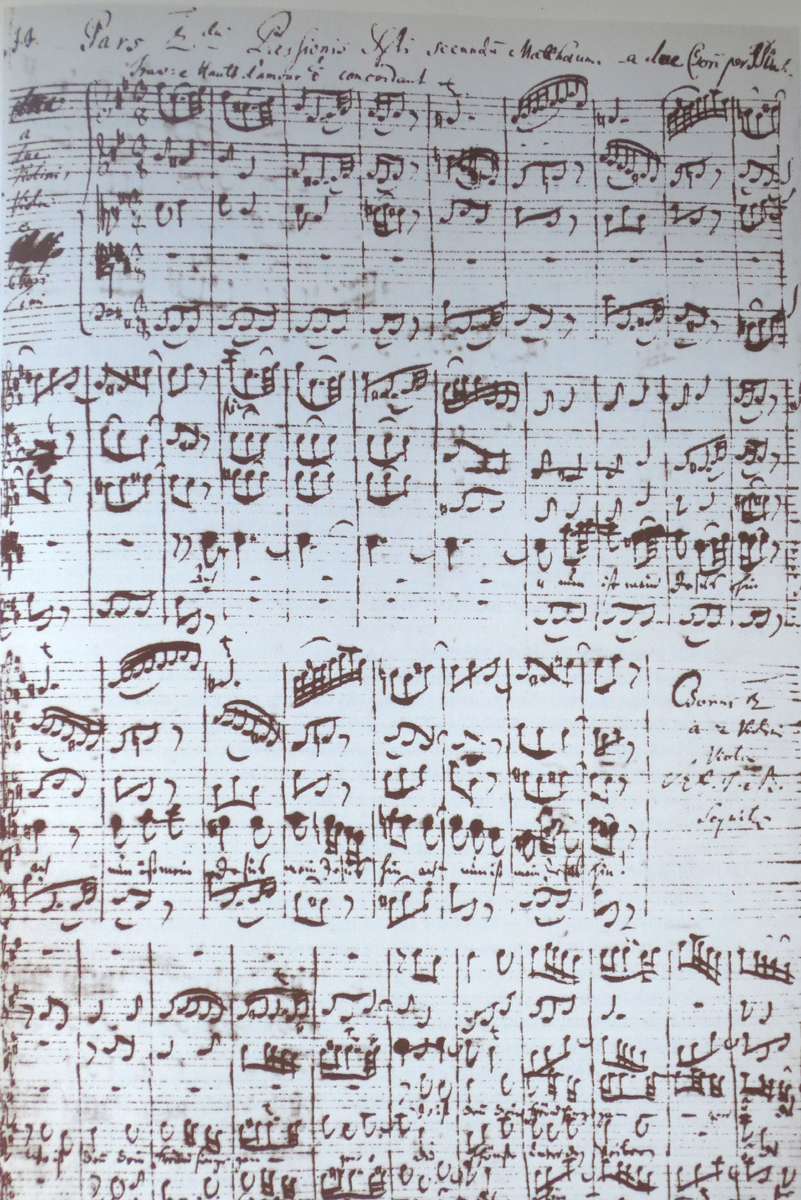 バッハ自筆の楽譜、マタイ受難曲の第二部冒頭部分