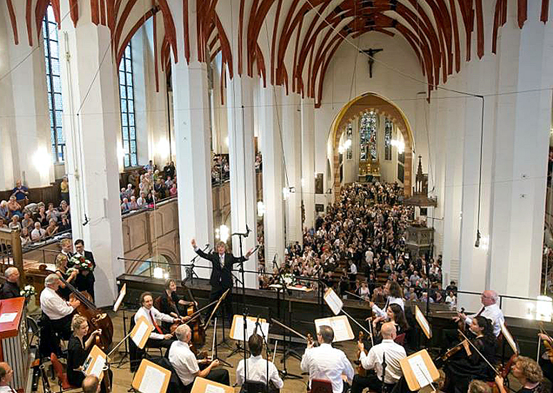 バッハ音楽祭は各教会持ち回りのような形式で午前9時半に“音楽ミサ”が行われる。その中にバッハの時代なら想像もできないことだが、カトリック教会でのバッハ演奏、コーラスも含まれていたりする。それが小1時間、それから11時に旧市庁舎の裏、アルテボーゼ(旧証券取引所)の2階で、主にその年のバッハ・コンクールの入賞者などのリサイタルがある。その年にもよるが、ここが蒸し暑い。もちろん、バッハ音楽祭に使われる他の会場同様エアコンなどはない。このあたりで睡魔が襲ってくる。朝食を詰め込み過ぎたバチだ。