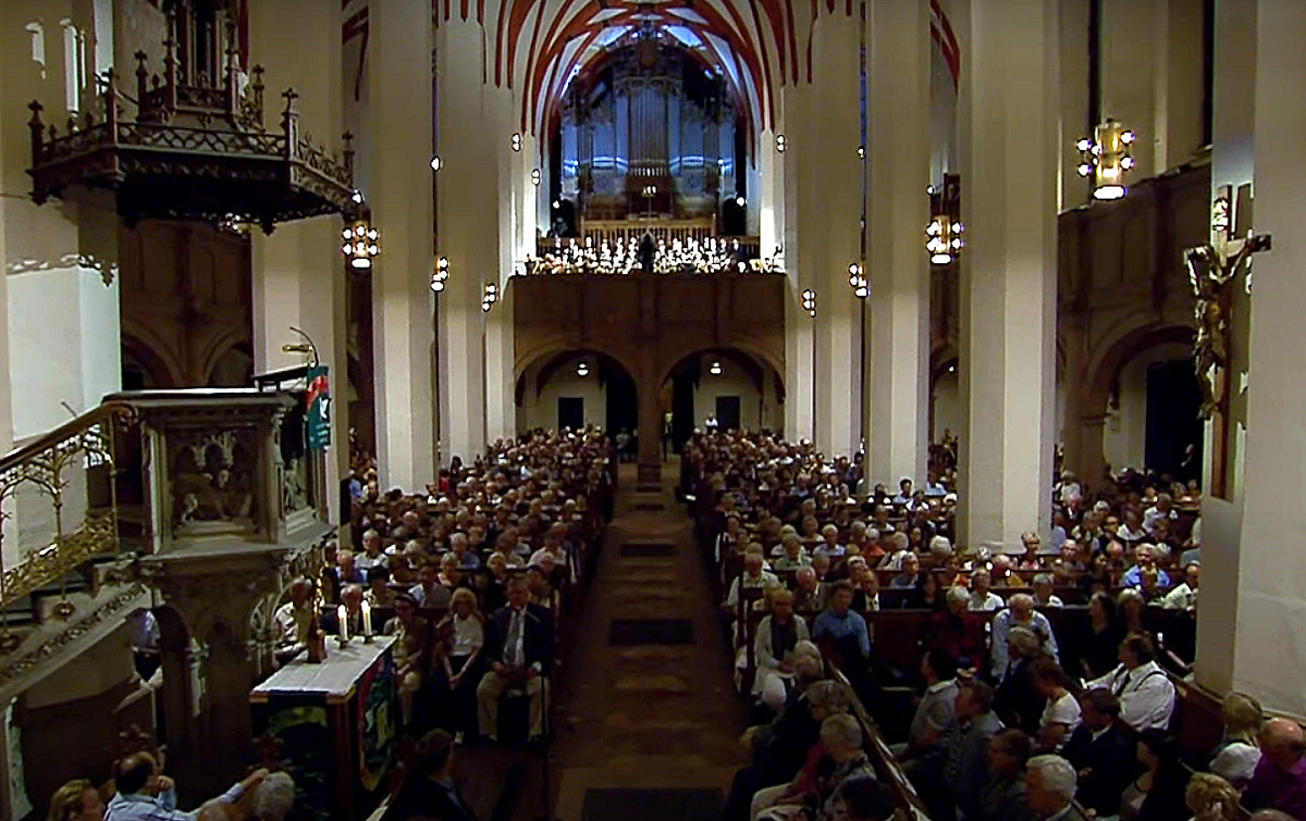 締めは“ロ短調ミサ”が定番になっている。最終コンサートは聖トーマス教会で、夕方の6時に始まる。この最終コンサート“ロ短調ミサ”の演奏家は毎回変わる。いつの年だったのか記憶にないのだが、2階の演奏者が陣取る演奏ボックスとでも呼べば良いのだろうか、そのすぐ脇の席に着かされたこともある。今思えば、これも“鈴木さんのお陰”ではなかったか…。その時、目の前で指揮者クリストフ・ビラーさん、独唱者たち、ゲバントハウス管弦楽団、そして聖トーマス教会合唱団の演奏風景を観ることができたのだった。