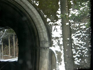鵜飼の先のトンネルは"す"だった。47もトンネルがあったことになる。トンネルの数がちょうど"いろはにほへと"の数と一致しているならこれで終わり。いや、もうひとつ"ん"があるかも知れないな。何か予感がして前方をみると、やはりトンネルがあった。なるほど、これが最後のトンネルだ。私は揺れる車内でカメラを構えた。シャッターを押してほっとしたとき、その先にもうひとつトンネルがあった。文字がある。まさかそんなはずは……と慌ててカメラを構えたが間に合わなかった。あれはなんという文字だろう。